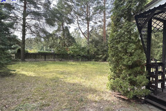 Nieruchomość graniczy z lasem, na działce nasadzenia i sporo wolnej przestrzeni.