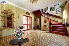 Piętro - pięć sypialni, dwie garderoby, pokój kąpielowy, łazienka oraz hol.