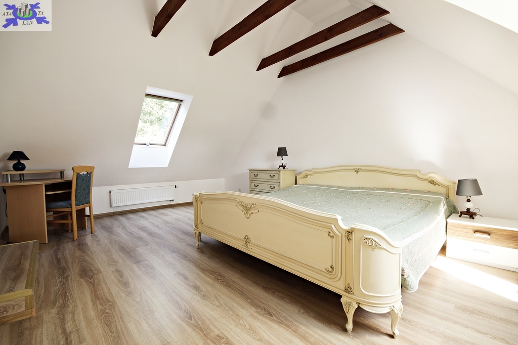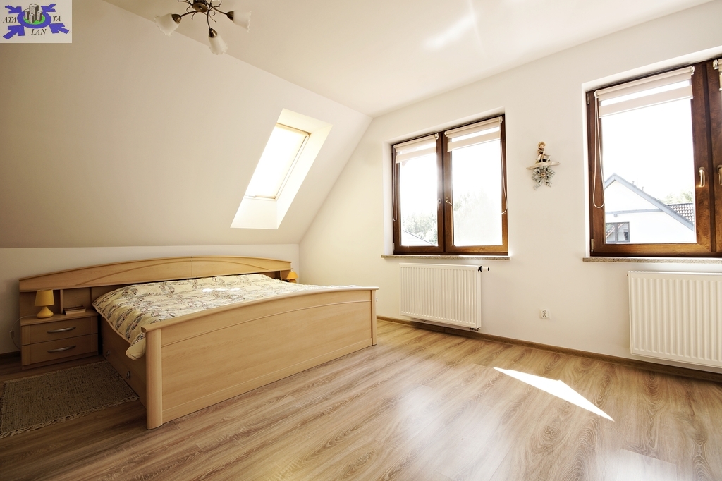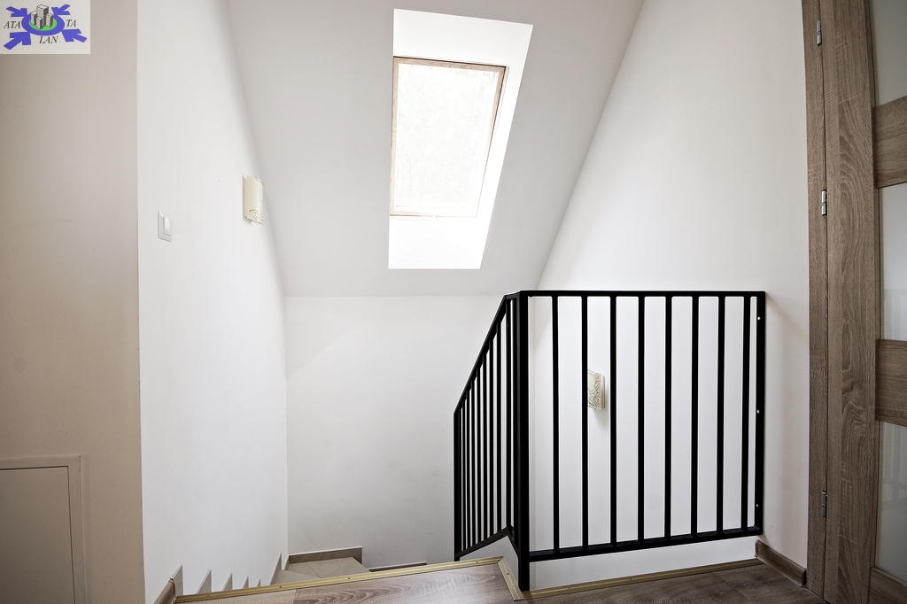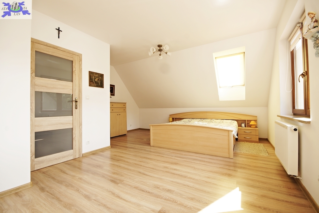 Piętro 3 sypialnie (25 m2, 20 m2, 12 m2), łazienka, korytarz.