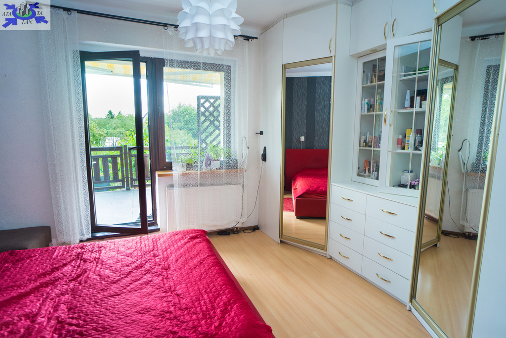 Mieszkanie z osobnym wejściem, ma okna skierowane na wschód południe i zachód, posiada obszerny taras z widokiem na ogród, bardzo jasne.