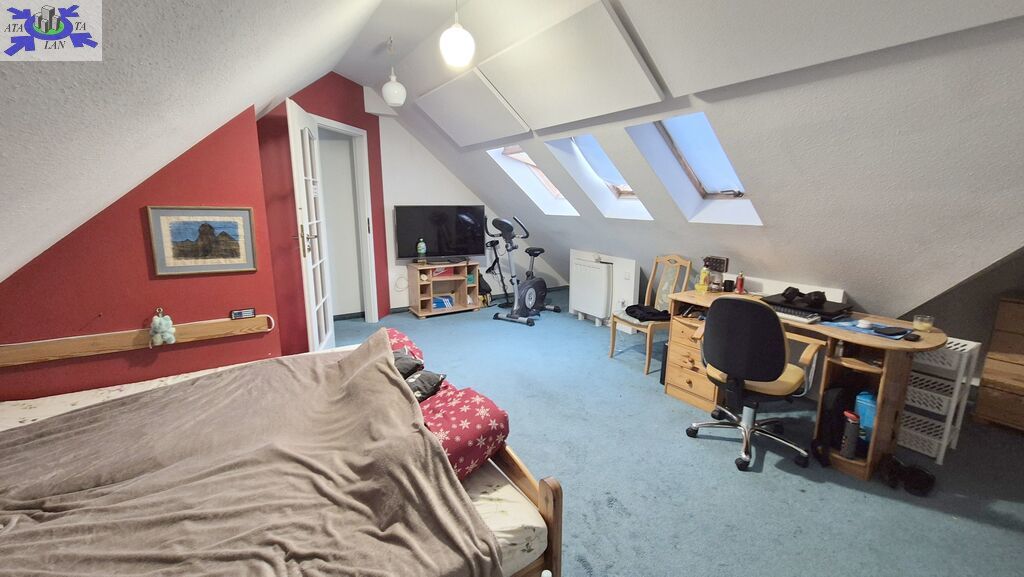 * poddasze gospodarcze, na którym znajduje się sypialnia i garderoba wejście na poddasze pięknymi mahoniowymi schodami.