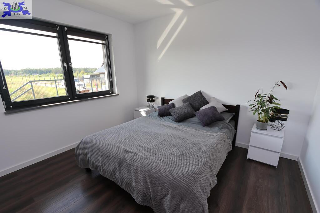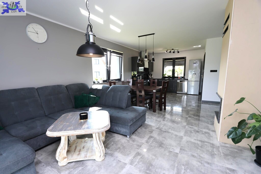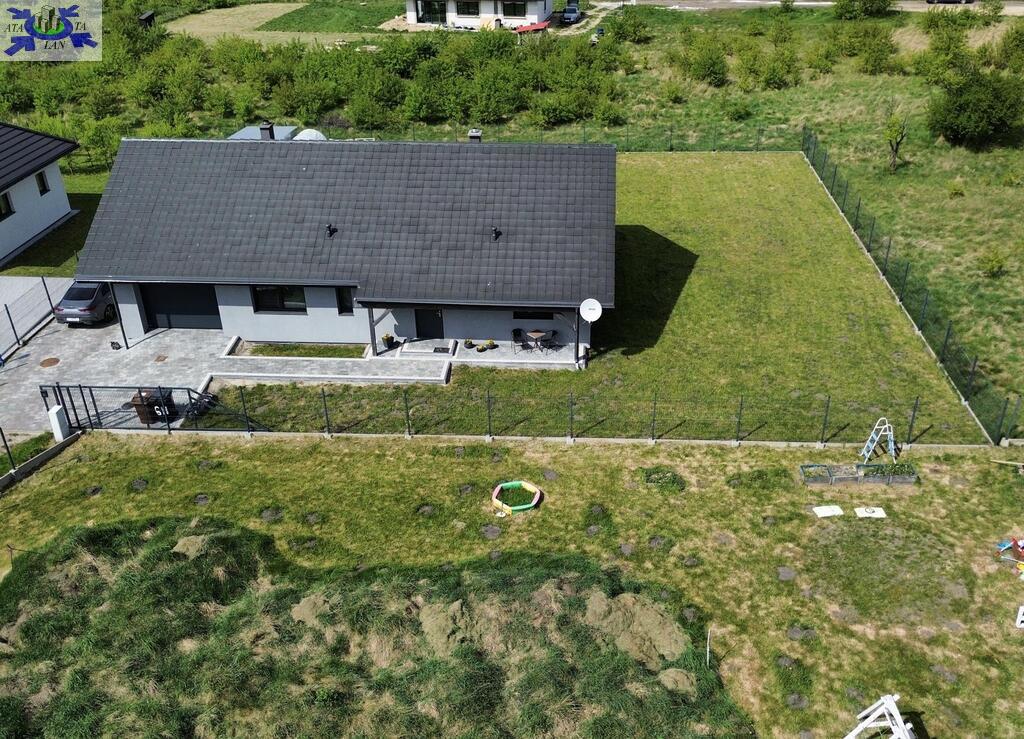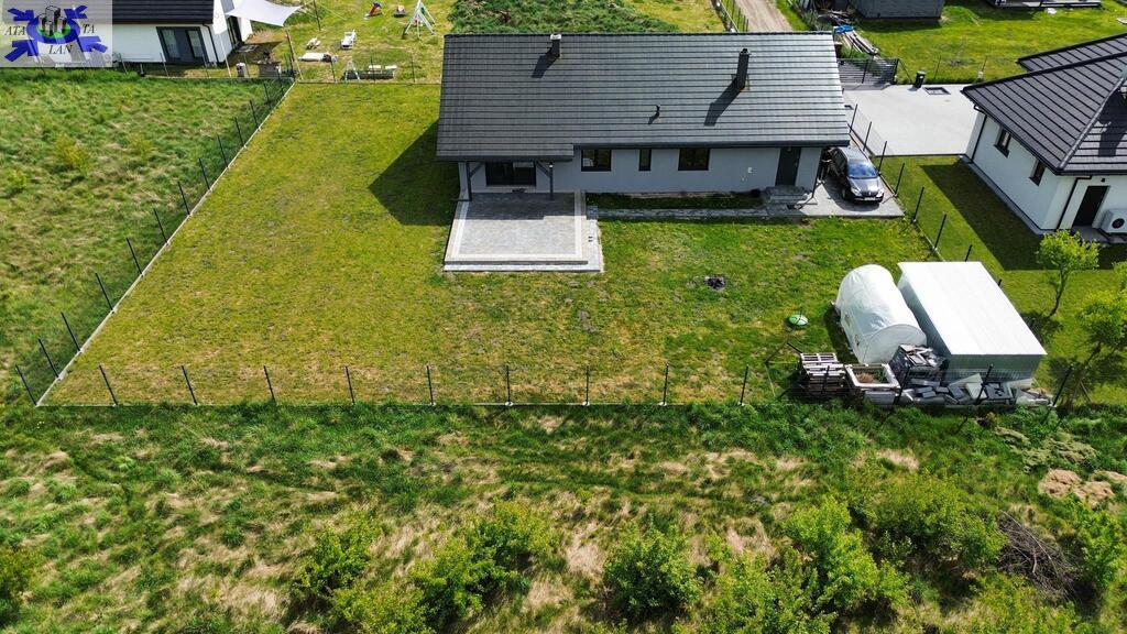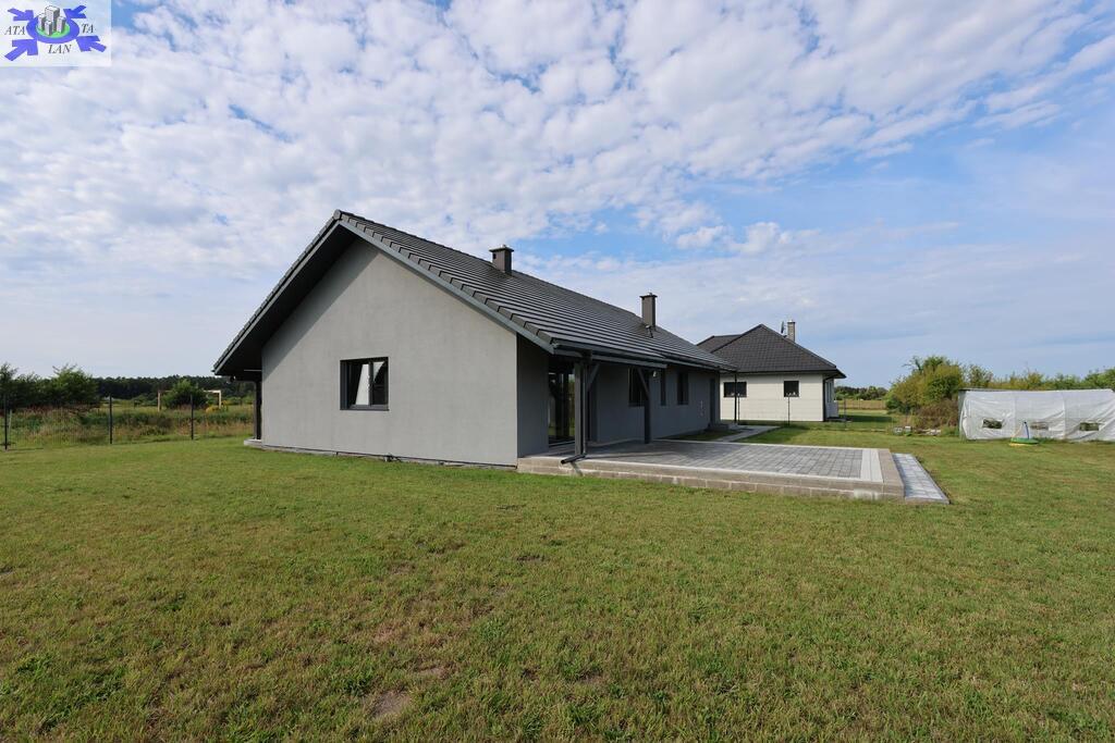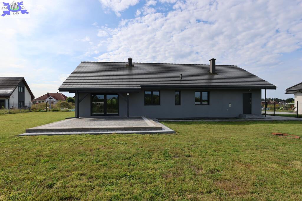 Dom parterowy o pow. użytkowej 109,80 m2 (salon z aneksem kuchennym i jadalnią + 3 pokoje, 2 łazienki, garderoba), położony na osiedlu domów jednorodzinnych, w niedalekiej odległości od lasu. Dojazd drogą prywatną utwardzoną. To doskonała nieruchomość dla rodziny 2+2.