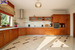 salon z kominkiem i wyjściem na taras, trzy sypialnie, kuchnia z jadalnią, łazienka z wanną i prysznicem, toaleta, trzy korytarze, kotłownia (8,1 m2) i garaż (25,4 m2) z automatyczną bramą.