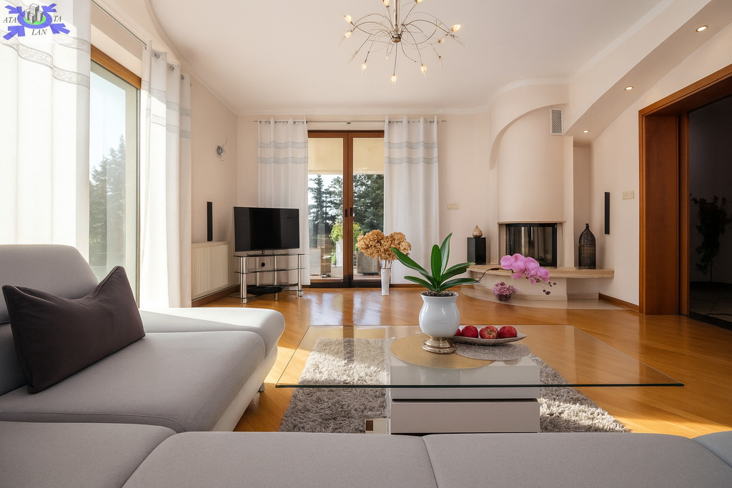 Na sprzedaż dom o powierzchni użytkowej 258 m2 (całkowitej 358 m2), położony na działce 1700 m2. Nieruchomość otoczona jest ogrodem z drzewami i tujami, co zapewnia ciszę i prywatność.