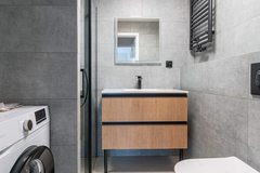 nowa kuchnia wyposażona w sprzęt AGD oraz stylowa łazienka po remoncie
