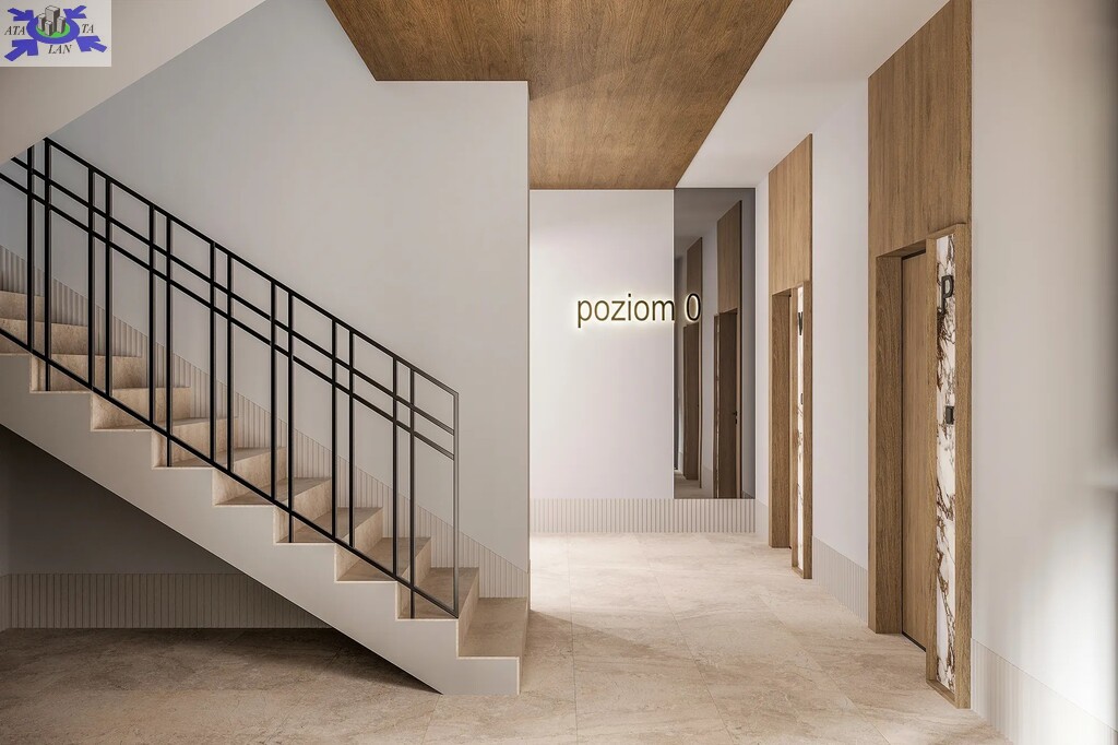 Wnętrza części wspólnych zaprojektowano w jasnej tonacji, podkreślającej nowoczesny styl oraz wyjątkowy charakter tego miejsca. Zastosowane rozwiązania ekologiczne nie tylko dbają o środowisko, ale także podnoszą komfort codziennego życia, tworząc przestrzeń sprzyjającą odpoczynkowi, pracy i integracji.