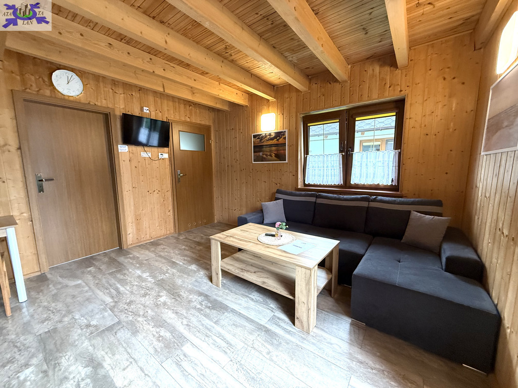 Salon połączony z aneksem kuchennym - narożnik, telewizor, stolik, stół z krzesłami do posiłkówKuchnia w pełni wyposażona lodówka, płyta indukcyjna, mikrofalówka, ekspres do kawy, czajnik