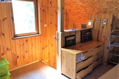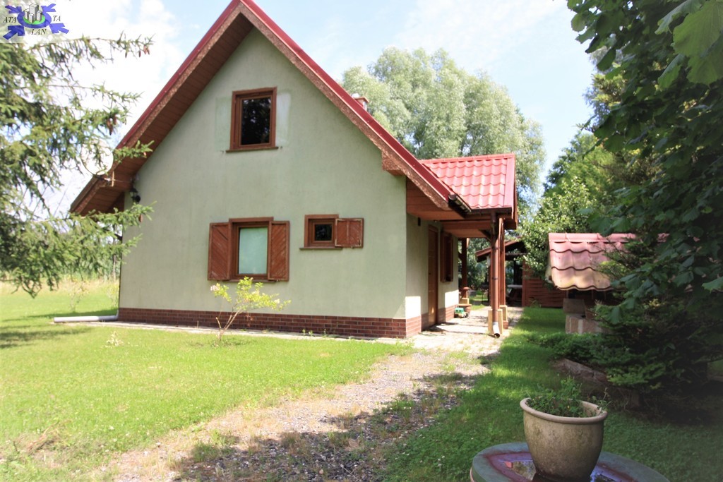 Na działce znajduje się całoroczny domek letniskowy o podstawie 35 m2, ogrzewany wydajną kozą norweską, co zapewnia komfort wypoczynku przez cały rok.