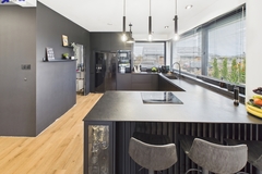 - Designerska kuchnia z granitowymi blatami i lodówkami na wino,