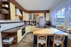 * oddzielna kuchnia z miejscem na duży stół jadalniany, wyposażona w zabudowę kuchenną, lodówkę, zmywarkę, płytę gazową, okap i mikrofalówkę,
