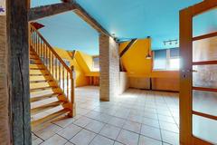 pierwszy poziom, z przestronnym salonem, kwadratową, ustawną kuchnią (do wykończenia), łazienką z wc i przedpokojemdrugi poziom stanowi otwarta przestrzeń, na której można wygospodarować 2 pokoje