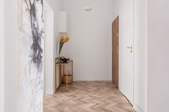 Już od progu to mieszkanie zachwyca przestrzenią, światłem i detalami w stylu klasycznej elegancji.