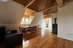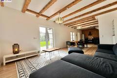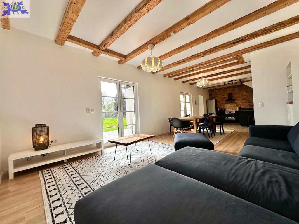 Dom przeszedł generalny remont. Zachowane zostały belki konstrukcyjne oraz drewno, które w połączeniu z nowoczesnym stylem nadają nieruchomości niesamowity klimat.