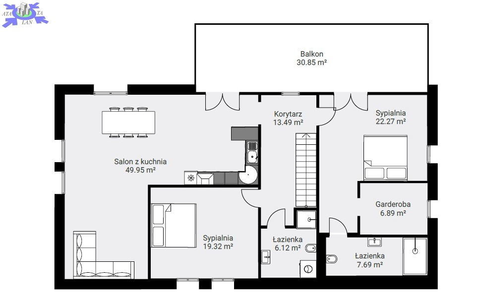 * Salon (z możliwością/miejscem na aneks kuchenny) - 49,95 m2