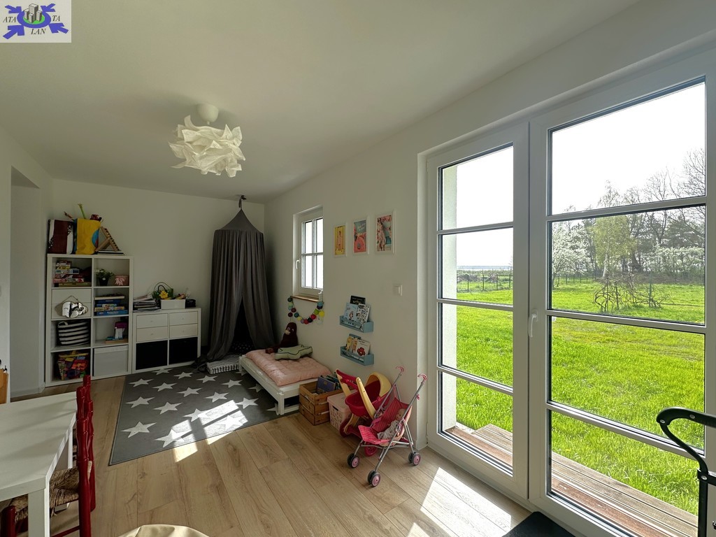 Z salonu oraz sypialni na parterze wyjście na piękny ogród z drzewami owocowymi.