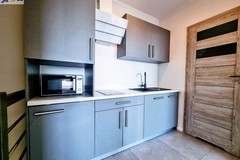 Kuchnia wyposażona w meble w zabudowie oraz sprzęt AGD lodówka, płyta grzewcza, okap, zmywarka, mikrofalówka. W łazience kabina prysznicowa, umywalka, toaleta, pralka. W pierwszym pokoju znajduje się w duże łóżko, szafa oraz stolik, w drugim pokoju rozkładana kanapa, stolik kawowy, komoda oraz regał i biurko. Z obu pokoi wyjście na duży taras, idealny do relaksu.