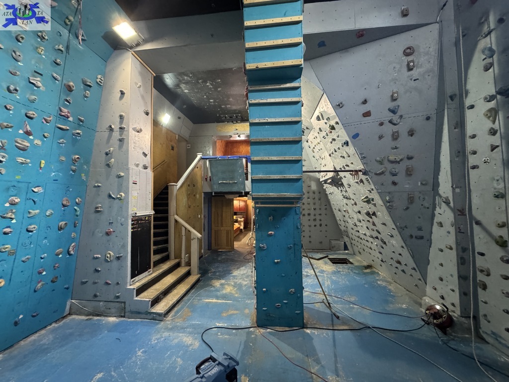 Lokal isytuowany jest na dwóch poziomach, w którym funkcjonowały ścianki wspinaczkowe.