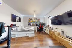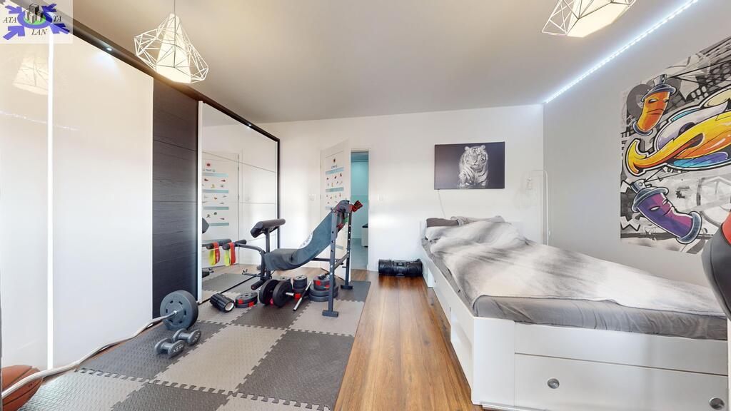 - duża sypialnia powstała w wyniku połączenia 2 pokoi,