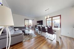 Całe mieszkanie urządzone i wyposażone w bardzo wysokim standardzie. Nie wymaga absolutnie żadnych nakładów.