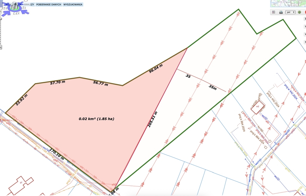 PRZEZ DZIAŁKĘ PRZECHODZĄ LINIE WYSOKIEGO NAPIĘCIA 400kV oraz 220kV.