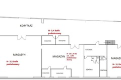 Budynek podzielony jest na część biurową ok 100 m2 oraz magazynową (rzuty w galerii).