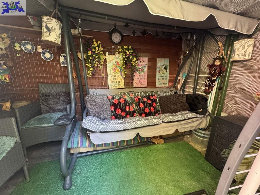 Ładnie zagospodarowany ogródek z bezpośrednim wyjściem z balkonu. W ogrodzie mała altanka z miejscem do odpoczynku.