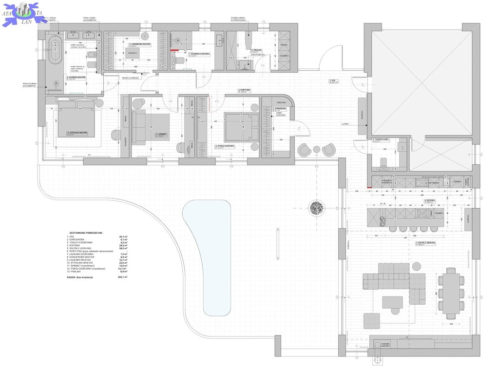 przemyślany, wygodny układ pomieszczeńpodział na strefę dzienną i nocnąduże przeszklenia wpuszczające mnóstwo naturalnego światłagaraż 2 stanowiskowy w bryle budynku (37m2)