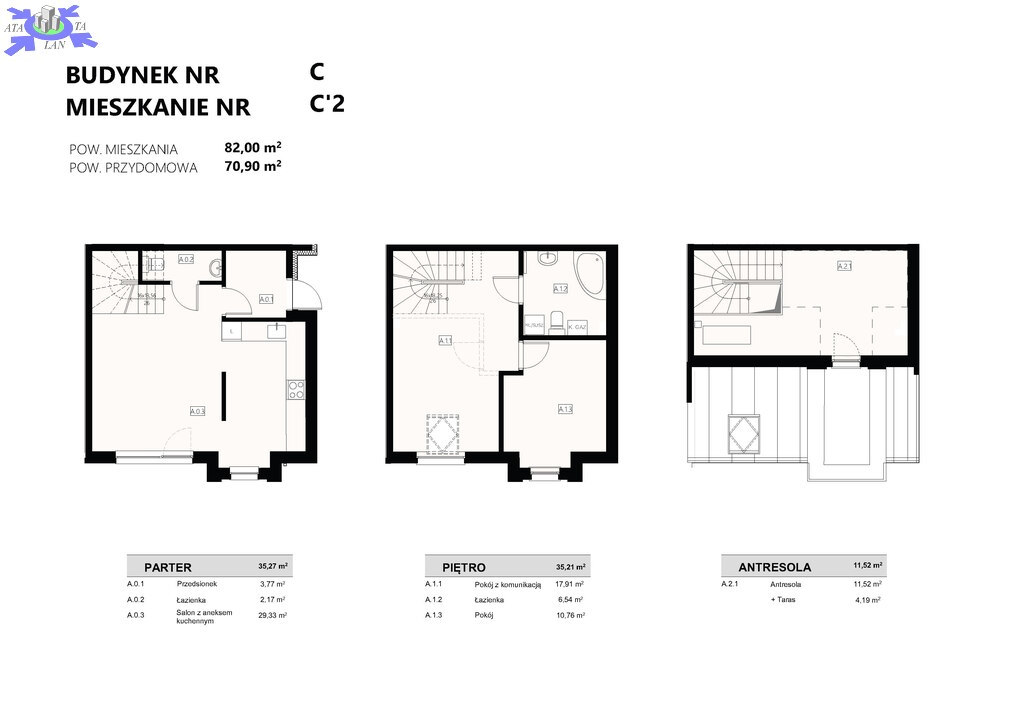 Mieszkanie o powierzchni 82 m2 składa się z 3 poziomów