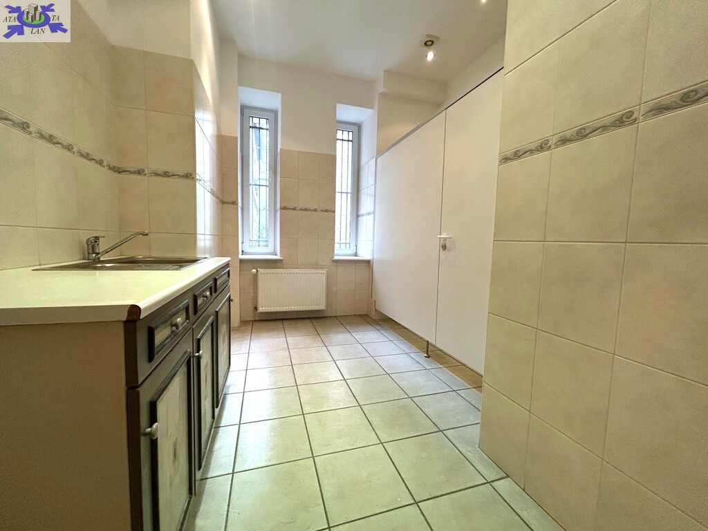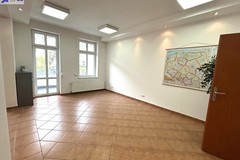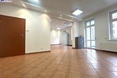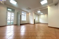 - pomieszczenie biurowe od frontu (pow. 43,90 m2) z wydzielonymi dwoma strefami (pierwsza z wejściem z ulicy, druga z balkonem), na podłodze terakota, okna PCV, rolety zewnętrzne, przegroda ze szklanej cegły przy wejściu