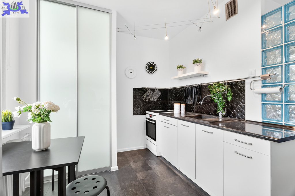Układ pomieszczeńSalon z aneksem kuchennym (ok. 20 m2) - przestronna strefa dzienna, doskonała do spotkań i wypoczynku