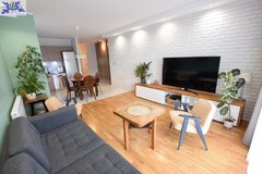 Mieszkanie urządzone zgodnie z nowoczesnymi trendami wyposażenia wnętrz o bardzo korzystnym układzie pomieszczeń (odseparowana część sypialna od salonu i kuchni).