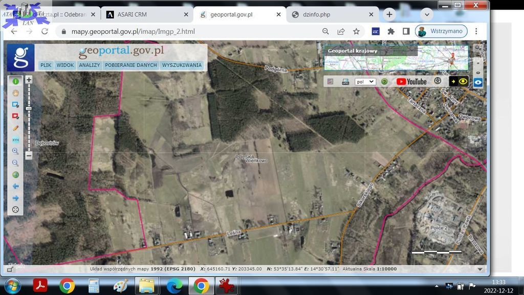 Nieruchomość gruntowa niezabudowana zlokalizowana w m. Wieńkowo, gm. Police, powiat policki, woj. zachodniopomorskie, o powierzchni 3.38 ha.