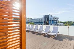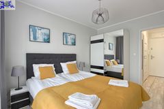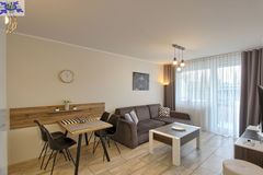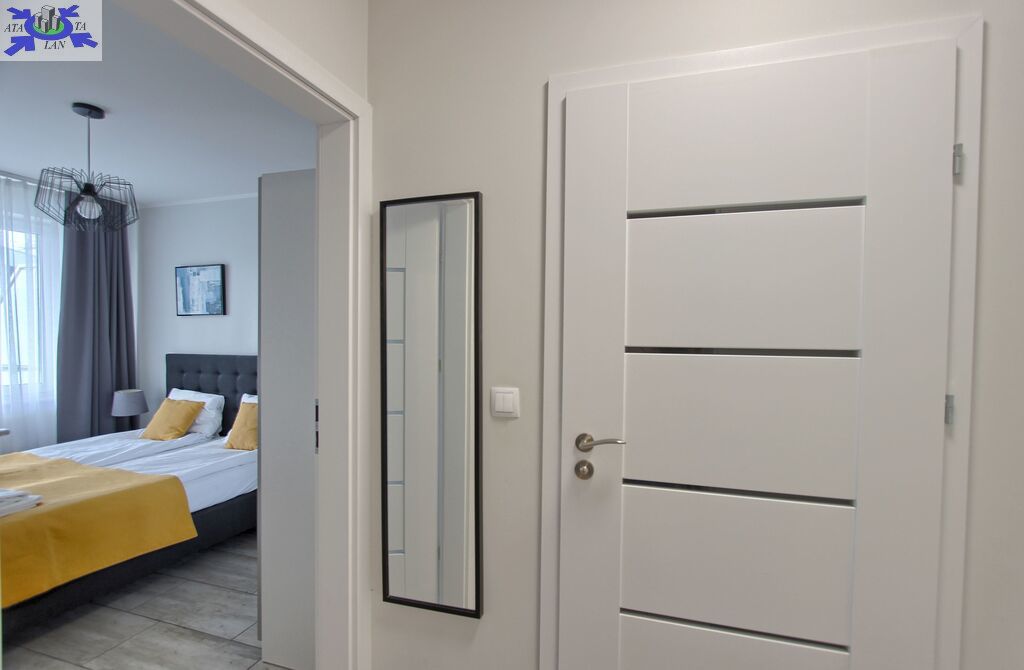 Apartament umeblowany, ładnie i wygodnie urządzony. Powierzchnia to prawie 38 m2. Składa się z salonu z rozkładaną kanapą, w pełni wyposażonego aneksu kuchennego oraz sypialni z łożem małżeńskim i łazienki z prysznicem. Dodatkowym atutem jest taras na który można wyjść z sypialni, jak i z salonu. W budynku znajduje się siłownia, rowerownia, a na dachu taras z leżakami. Teren obiektu jest ogrodzony. Budynek wybudowany przez solidnego kołobrzeskiego dewelopera, dobrze zarządzany. Koszty utrzymania to około 600 zł. Ogrzewanie i ciepła woda z sieci miejskiej.