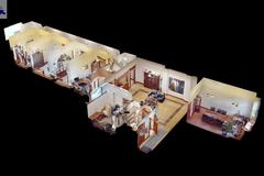 Całość ma powierzchnię 387 m2 i została podzielona na dwa niezależne moduły.