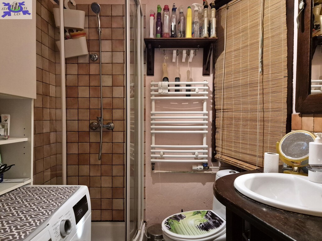 * łazienka z prysznicem, wc i umywalką z możliwością powiększenia