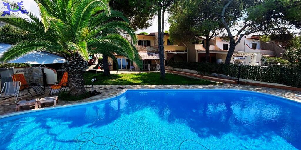 Oferujemy na sprzedaż dom o pow .100 m2 w zabudowie szeregowej z basenem, położony w wyjątkowo pięknym miejscu bezpośrednio nad morzem na terenie doskonale utrzymanego parku w Baia Del Carpino . Na parterze znajduje się przestronny salon, osobna kuchnia z jadalnią , i łazienka.