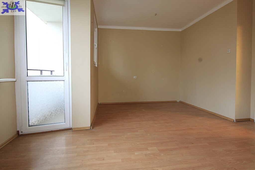 Układ pomieszczeń duży, jasny pokój dzienny z wyjściem na balkon,