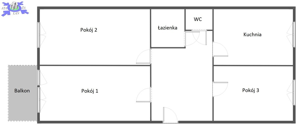 Pokoje o powierzchni 19m2/13m2/12m2, kuchnia widna o powierzchni około 12m2, łazienka i wc osobno.