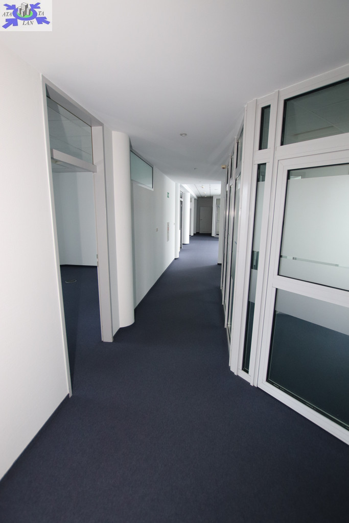 - Sufity podwieszane z płyty G-K w korytarzach, z zabudowanym kanałem wentylacyjnym i instalacją oświetlenia elektrycznego