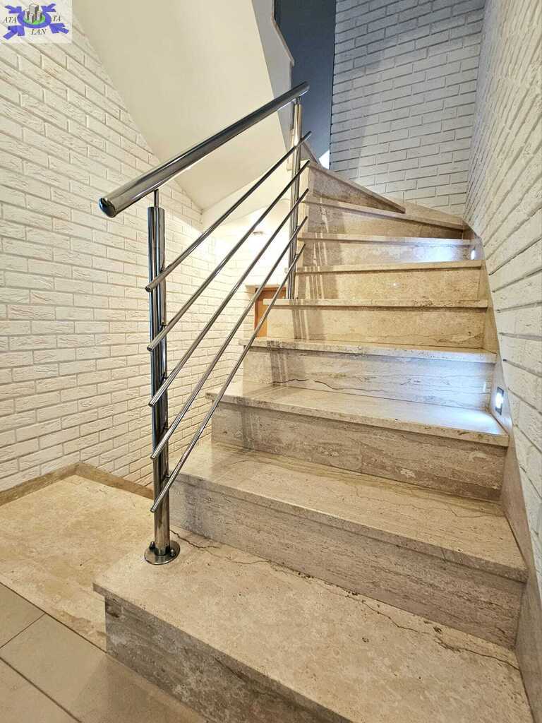 Na powierzchnię parteru budynku, pełniącego jednocześnie rolę strefy dziennej domu, składają się kuchnia z jadalnią, przestronny salon z którego wychodzi się na taras oraz zaaranżowany ogród, łazienka z wc, pomieszczenie sanitarno - gospodarcze z bezpośrednim wejściem do garażu (2. stanowiskowy, z bramą otwieraną na pilota), korytarz i wiatrołap. Na piętro nieruchomości prowadzą piękne, marmurowe schody (Breccia). W górnej części domu, pełniącej głownie strefę nocną, stanowią 3. sypialnie, pokój wielofunkcyjny, główna łazienka z wc oraz korytarz.