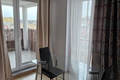 Z salonu jest wyjście na balkon w kształcie kwadratu o pow.7 m2.