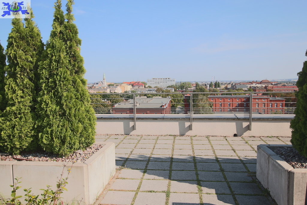 Dostępny dla mieszkańców taras na dachu budynku, bardzo ładnie zagospodarowany z widokiem na panoramę Szczecina.