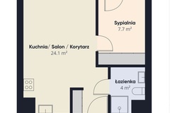 Lokal składa się z salonu z aneksem kuchennym, sypialni, łazienki oraz przedpokoju. Przemyślany układ pomieszczeń sprawia, że mieszkanie jest wygodne i funkcjonalne. Salon z aneksem tworzy otwartą przestrzeń dzienną, idealną do relaksu i spotkań, natomiast sypialnia zapewnia komfort i prywatność.