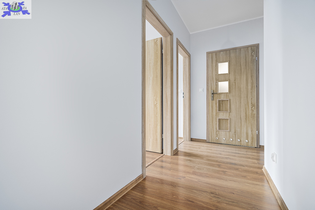 oraz przestronnego przedpokoju z którego prowadzi wejście do każdego z wymienionych pomieszczeń. Dzięki temu rozkład lokalu sprawia, że mieszkanie jest idealne dla grupy 3 studentów.