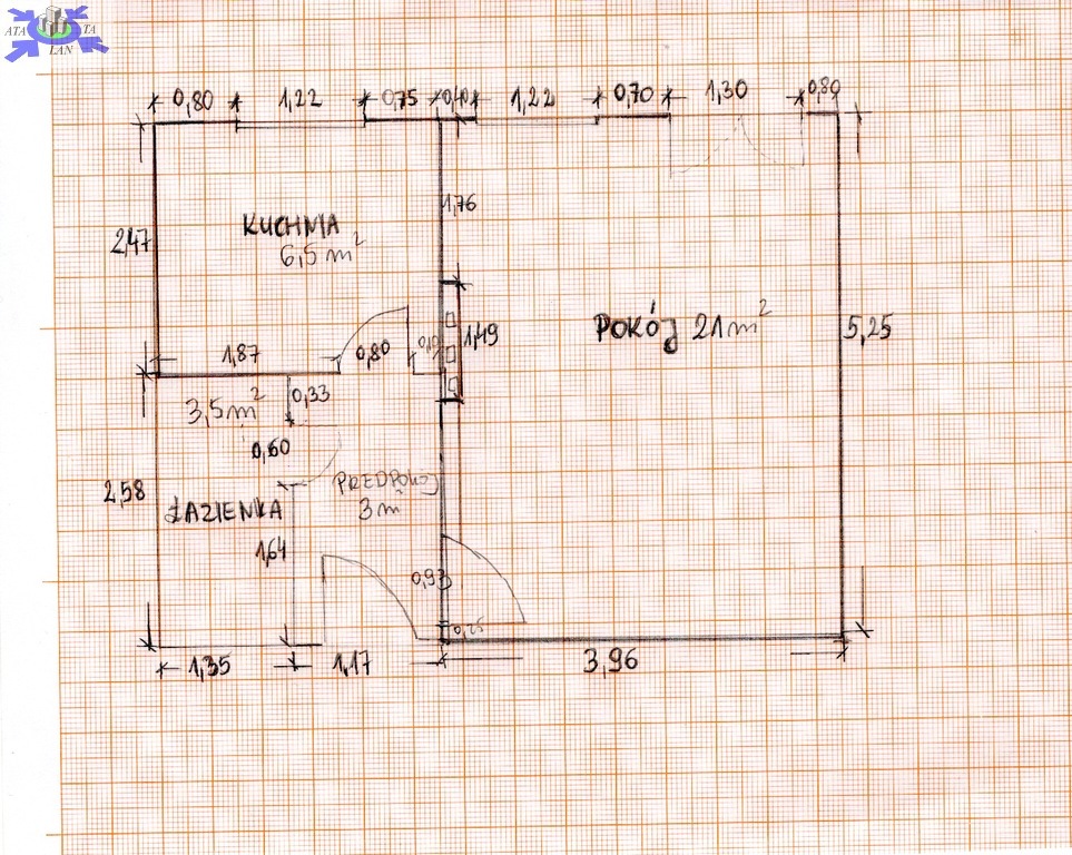 * Pokój o powierzchni 21 m2, oddzielony od kuchni ścianą nośną.