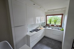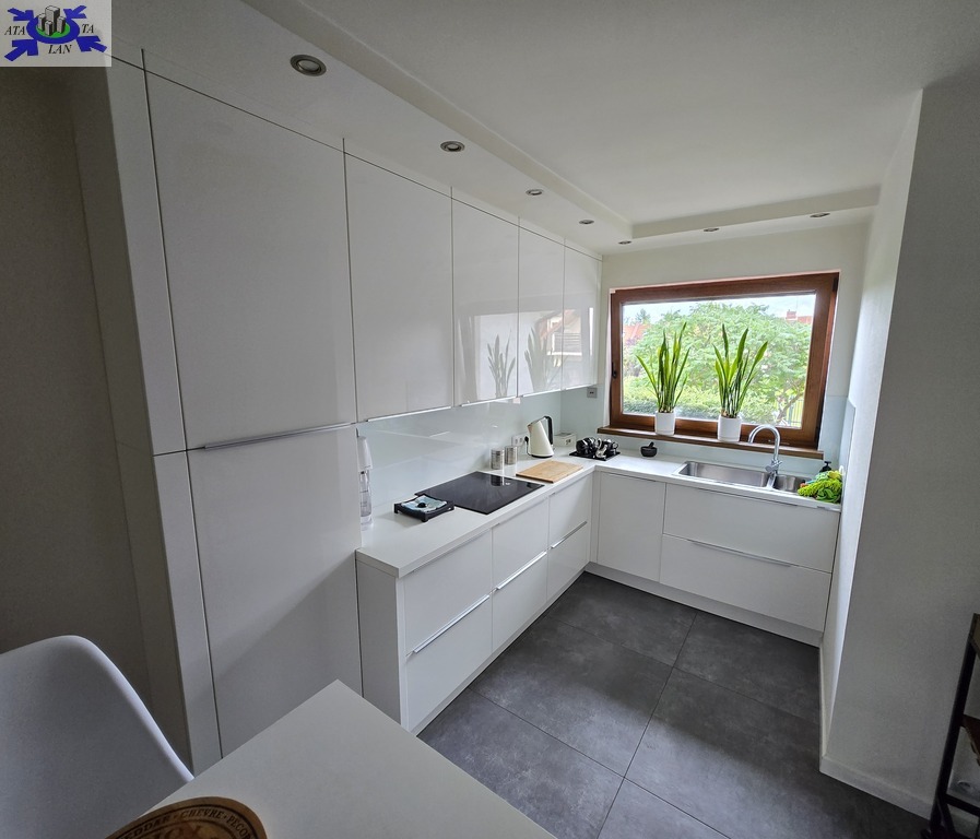 * półotwarta jasna kuchnia z oknem (meble wolsztyńskie na wymiar, w cenie - mikrofala, piekarnik, lodówko - zamrażarka oraz zmywarka 45 cm w zabudowie).