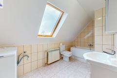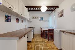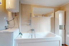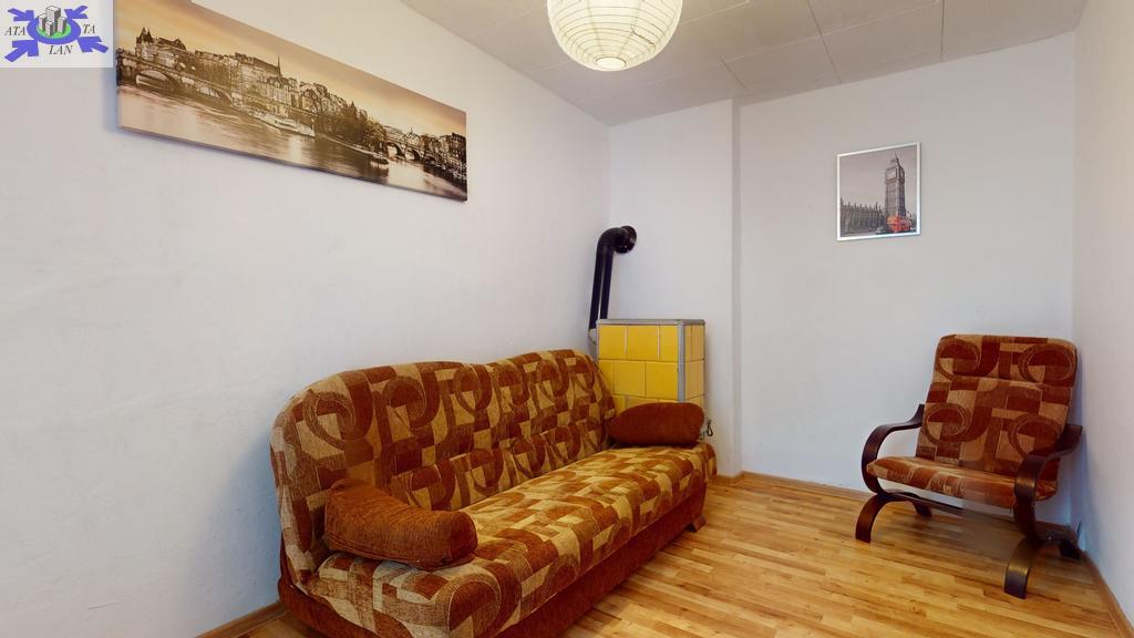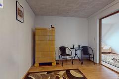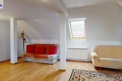 Na poddaszu jest trzecie mieszkanie z dużym pokojem dziennym, sypialnią, kuchnią i łazienką.