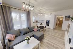 Na sprzedaż doskonałe 3 pokoje, urządzone ze smakiem w niskim bloku z 2021 roku. Powierzchnia mieszkania wynosi 58,6m2, składają się na nią 3 pokoje, w tym salon z aneksem kuchennym i wyjściem na ogród, przestronny korytarz oraz duża łazienka z wanną i wc. Niski czynsz około 450 zł, ogrzewanie i ciepła woda z sieci miejskiej.