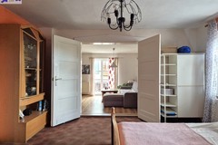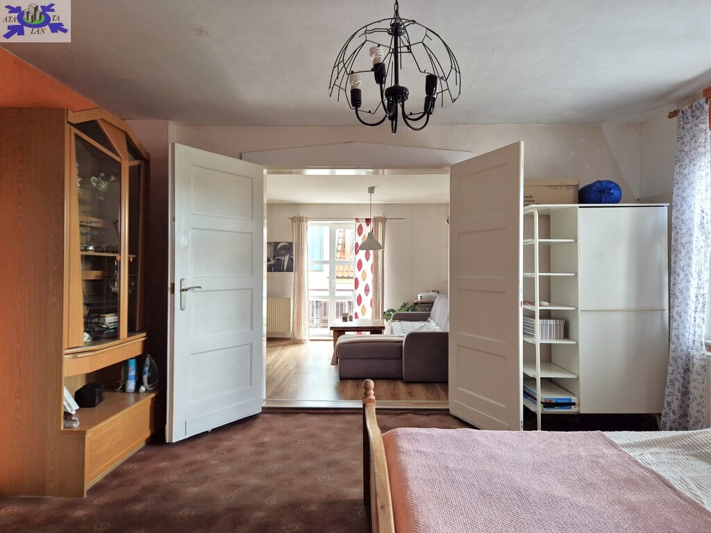 * 1 sypialnia przechodnia z pięknymi drewnianymi drzwiami otwierającymi się na salon