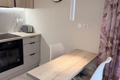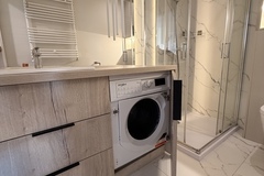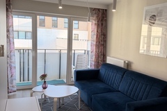 Mieszkanie znajduje się na 6. piętrze i zostało zaprojektowane z dużym wyczuciem stylu - wszystkie meble wykonano na wymiar, dzięki czemu wnętrze jest nie tylko nowoczesne, ale też wyjątkowo funkcjonalne. Jasny salon z rozkładaną sofą tworzy przytulną strefę wypoczynkową, a wydzielona część jadalniana doskonale sprawdza się do codziennych posiłków lub pracy przy laptopie. Aneks kuchenny został w pełni wyposażony w sprzęt AGD w zabudowie - zmywarkę, płytę, piekarnik i lodówkę. W łazience znajduje się prysznic oraz pralka, a pojemna szafa w zabudowie zapewnia dużo miejsca do przechowywania. Z salonu można wyjść na przestronny balkon z przyjemnym widokiem, idealny na poranną kawę lub wieczorny relaks.
